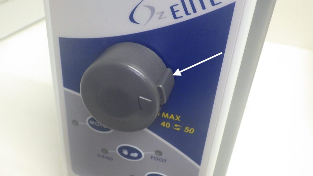 スピードコントロールダイヤル側面にあるスイッチを押しながらダイヤルを回すことで、40,000r/min以上の設定が可能になります。