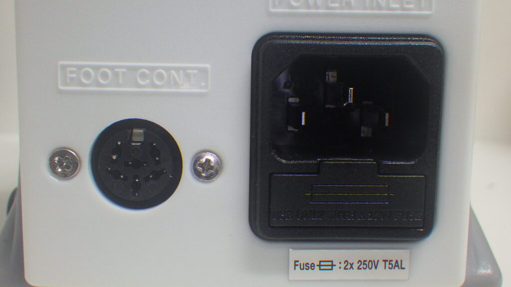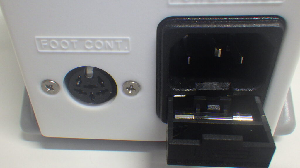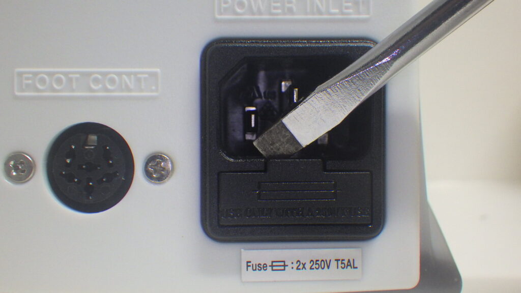 本体背面の電源差込口下部にヒューズボックスがあります。