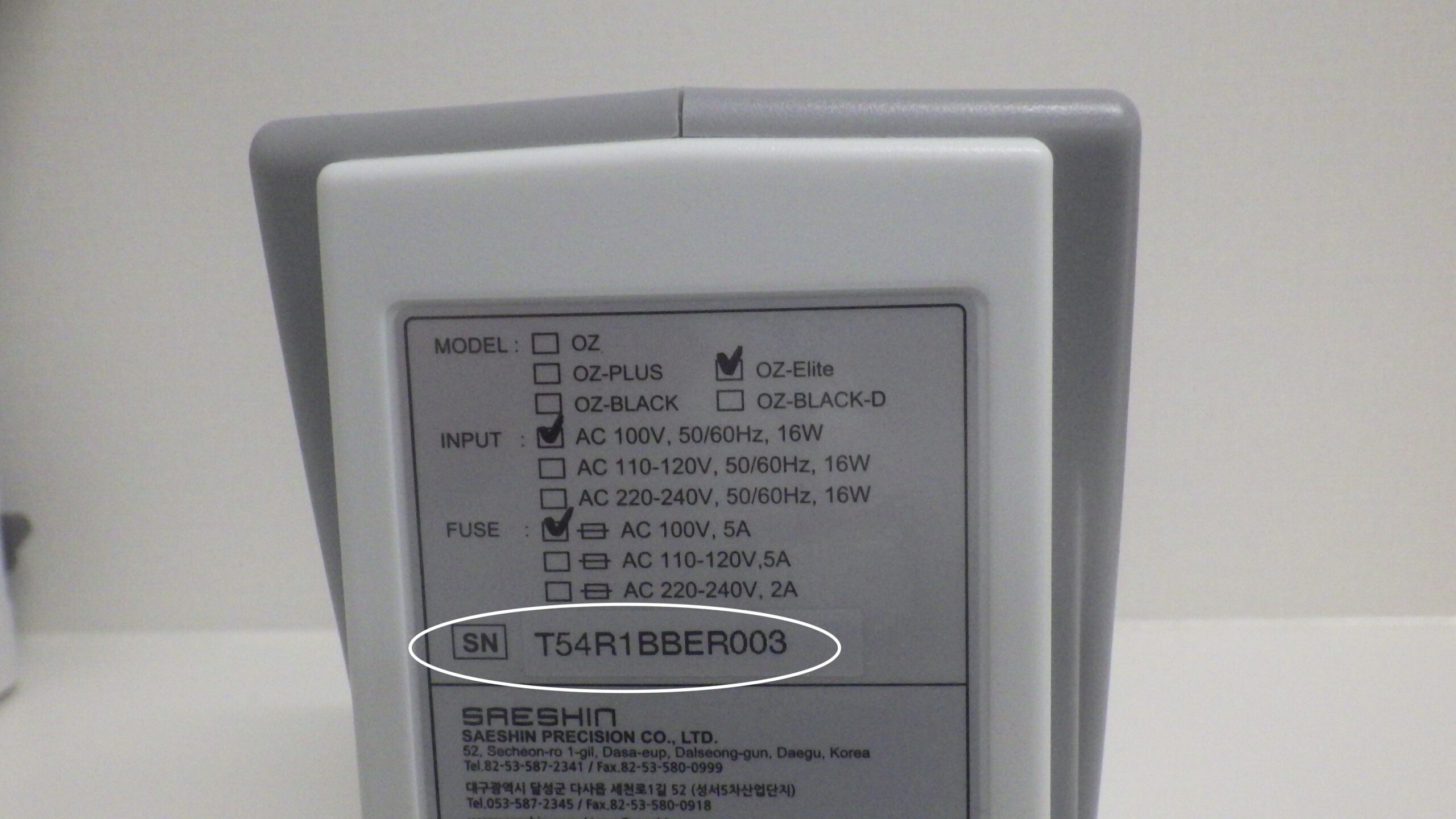 修理をご希望される場合は、写真のシリアルナンバー(○印部分)をご確認していただき症状と一緒にお知らせください