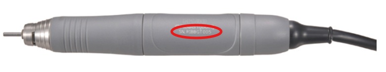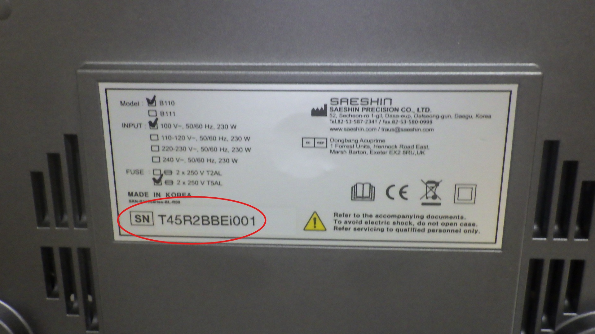 修理をご希望される場合は、写真のシリアルナンバー(○印部分)をご確認していただき症状と一緒にお知らせください