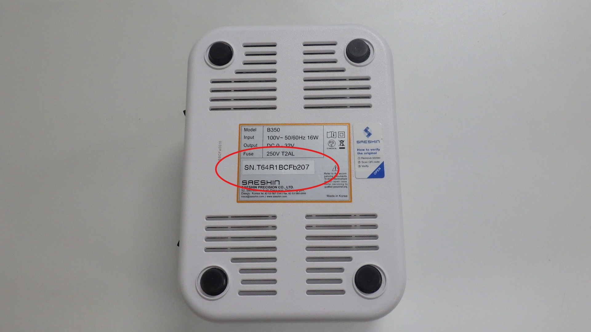修理をご希望される場合は、写真のシリアルナンバー(○印部分)をご確認していただき症状と一緒にお知らせください