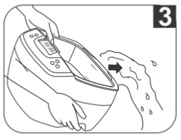 水道の蛇口から直接水を注ぐことはしないようお願いします。水がはねてパネルにかかった場合、内部に水が入り込み故障となる場合がございます。カップなどに水を汲み、水槽内へ注いで下さい。