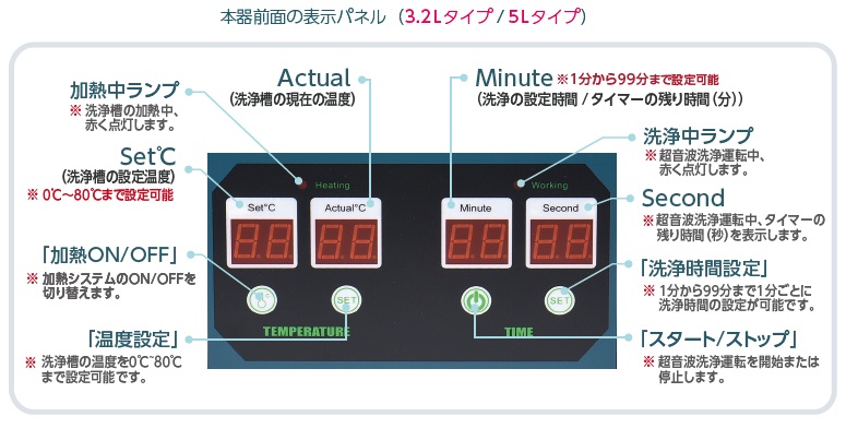 超音波洗浄器防水フラットパネル 2.2L・3.7L・4.1L