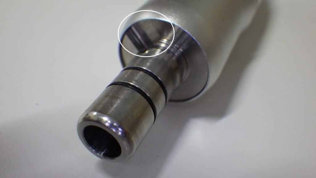 TTBio 5倍速ライト付コントラ及びCodent等速・5倍速コントラの突起物凸はバネ式となっており押すと引っ込みますが、バネが強めの為モーター側に溝(凹み)がないタイプは浮いてしまい上手く接続ができません。